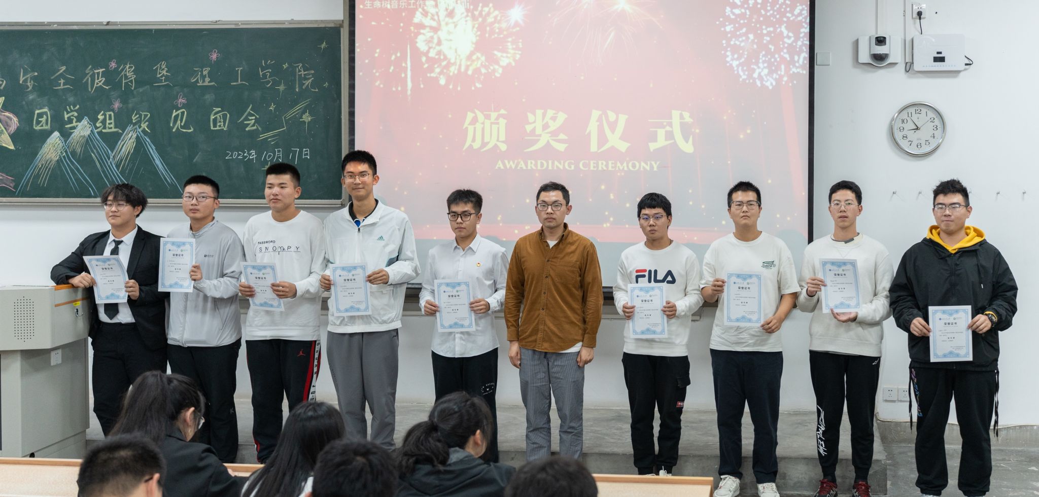 最后侯剑波及主席团成员为在开学至今表现优异的各部门成员及“晨光训练营”中表现突出的同学颁发证书,以表彰优秀干部的同时鼓励各成员再接再厉,奋进向上。