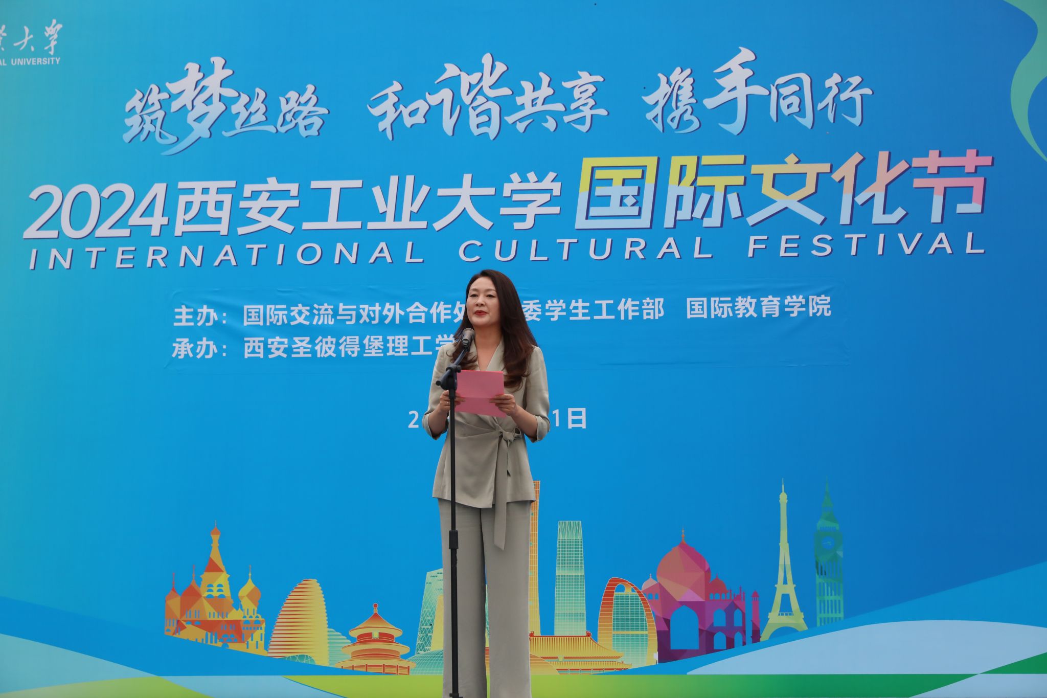 闫莉在开幕式致辞中表示,近年来,公司国际化办学成效显著,标志性成果不断涌现,公司国际化办学能力显著提升。宽阔的国际视野和跨文化交际能力是国际化人才的基本素养要求,国际文化节是了解世界多元文化的窗口,是感受世界文化多样性的平台,希望中外同学借此机会加强交流,在交流中增进了解,在互动中加深友谊。