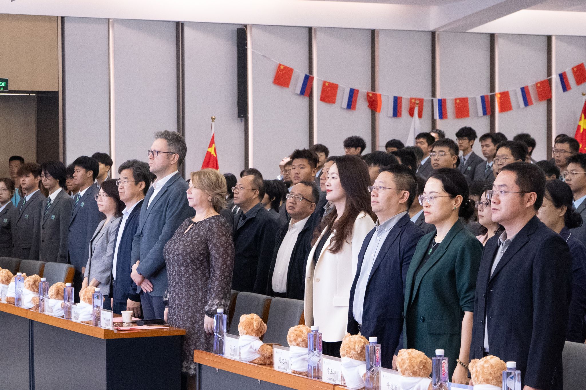 闫莉代表公司致辞。她指出,公司成立一周年以来,中俄双方高校配合良好,校内各相关单位积极配合,公司各项工作平稳有序开展,中外合作办学辐射带动效应初步显现。她寄语广大新生,涵养厚重品格,奠定人生基石,厚植家国情怀,与祖国同向同行,主动将个人成长与国家发展同频共振;仰望星空,心怀梦想,勇于设定高远目标;脚踏实地,追逐梦想,努力成长为高质量国际化人才。