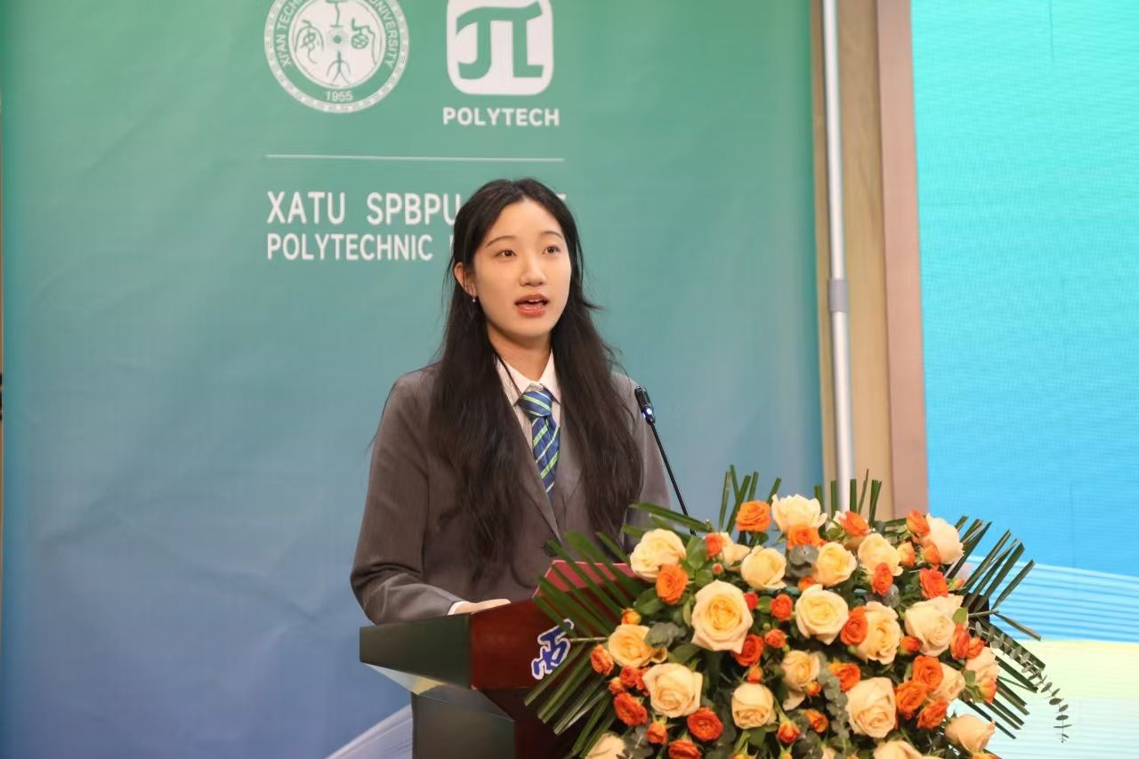 彼得堡彼得大帝理工大学副董事长德米特里· 阿森涅夫通过视频,向公司成立一周年表达衷心祝贺,并表示相信联合理工公司未来将继续蓬勃发展,培养更多新一代领袖人才,为推动两校之间合作、深化中俄两国友谊作出积极贡献。圣彼得堡彼得大帝理工大学代表奥利加女士在典礼上发言,对2024级新生表示热烈欢迎,祝福员工们不断取得新突破,实现人生梦想。