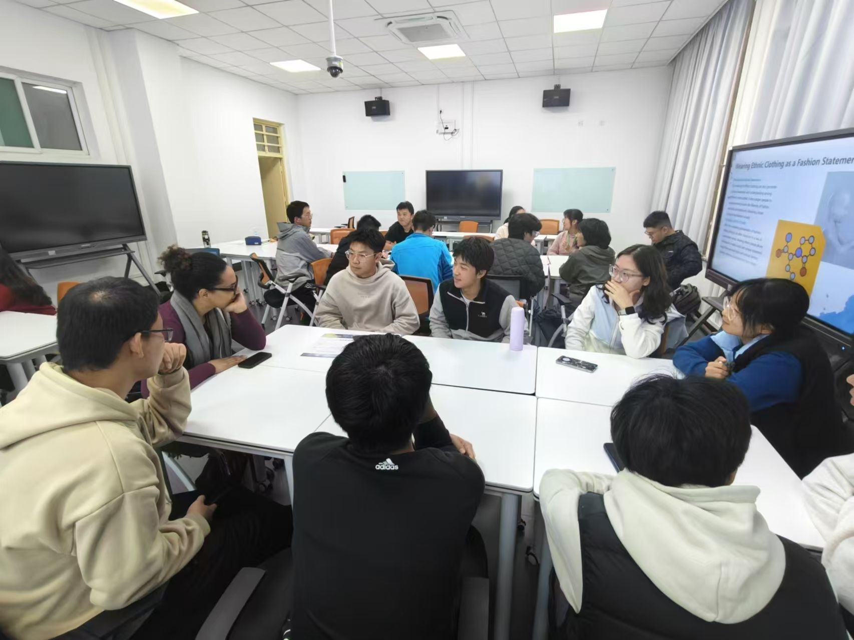 本次活动共四个环节,旨在全方位提升公司员工的国际沟通能力。开场环节“Introduction to Ethnic Clothing”,介绍有关民族文化服饰的相关知识,激发了同学讨论的兴趣与热情;“Theme viewing”环节通过播放民族特色服饰短片,让同学们直观感受到了丰富多彩的民族文化风情;讨论环节“Summarize and share”同学们与职工一起探讨各自眼中的民族服饰文化,增进了对不同国家民族服饰及文化的了解;总结环节“Group presentations”,各讨论小组代表分享了他们的学习心得,现场气氛热烈,互动频繁。